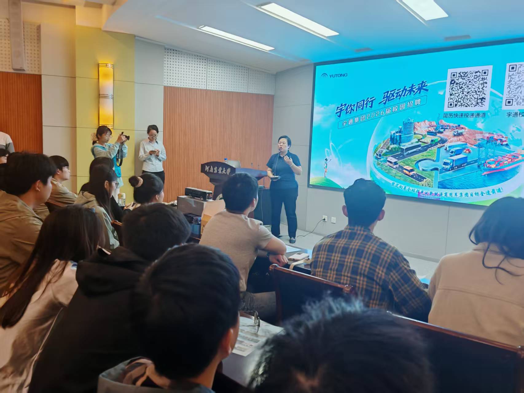 9月24日,宇通集团2026届校园招聘言讲会在我院如期举行,现场气氛热烈,吸引了众多有求职需求的学子参与。宣讲会上,企业代表不仅详细绍了涵盖营销推广、生产运营、职能管理等多领域的校招岗位计划,更围绕行业发展前景、企业核心业务等内容展开讲解,为学子们带来全面的职业发展信息,期间,字通集团HR团队全程提供面对面辅导,针对学子们普遍关心的校招方向定位、不同岗位能力要求、优选专业匹配度等问题逐一细致解答,从职业规划建议到简历优化技巧、应聘注意事项,全方位为学子求职保驾护航;同时,企业还贴心准备了精美的经纬小礼品, 现场发放给参与互动的学子,让大家在获取求职信息的同时收获满满惊喜。