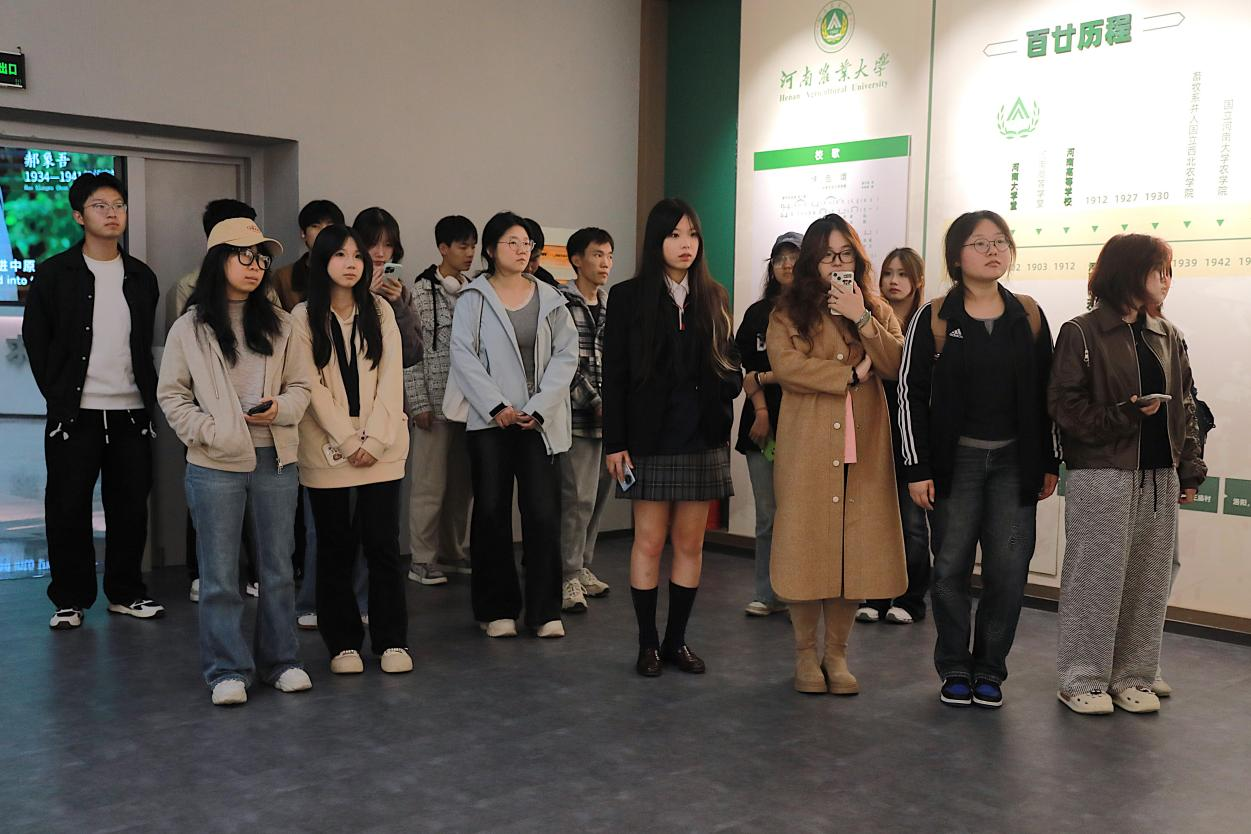 活动中,校史馆讲解员结合珍贵的实物展品、历史照片和文字资料,生动讲述了河南农业大学从建校至今的发展历程,详细介绍了学校建校一百年来的迁址和改名历程以及如今我校在农业科研、人才培养、社会服务等方面取得的突出成就。新生们认真聆听、驻足记录,在过程中逐渐加深对学校的认同感与归属感。