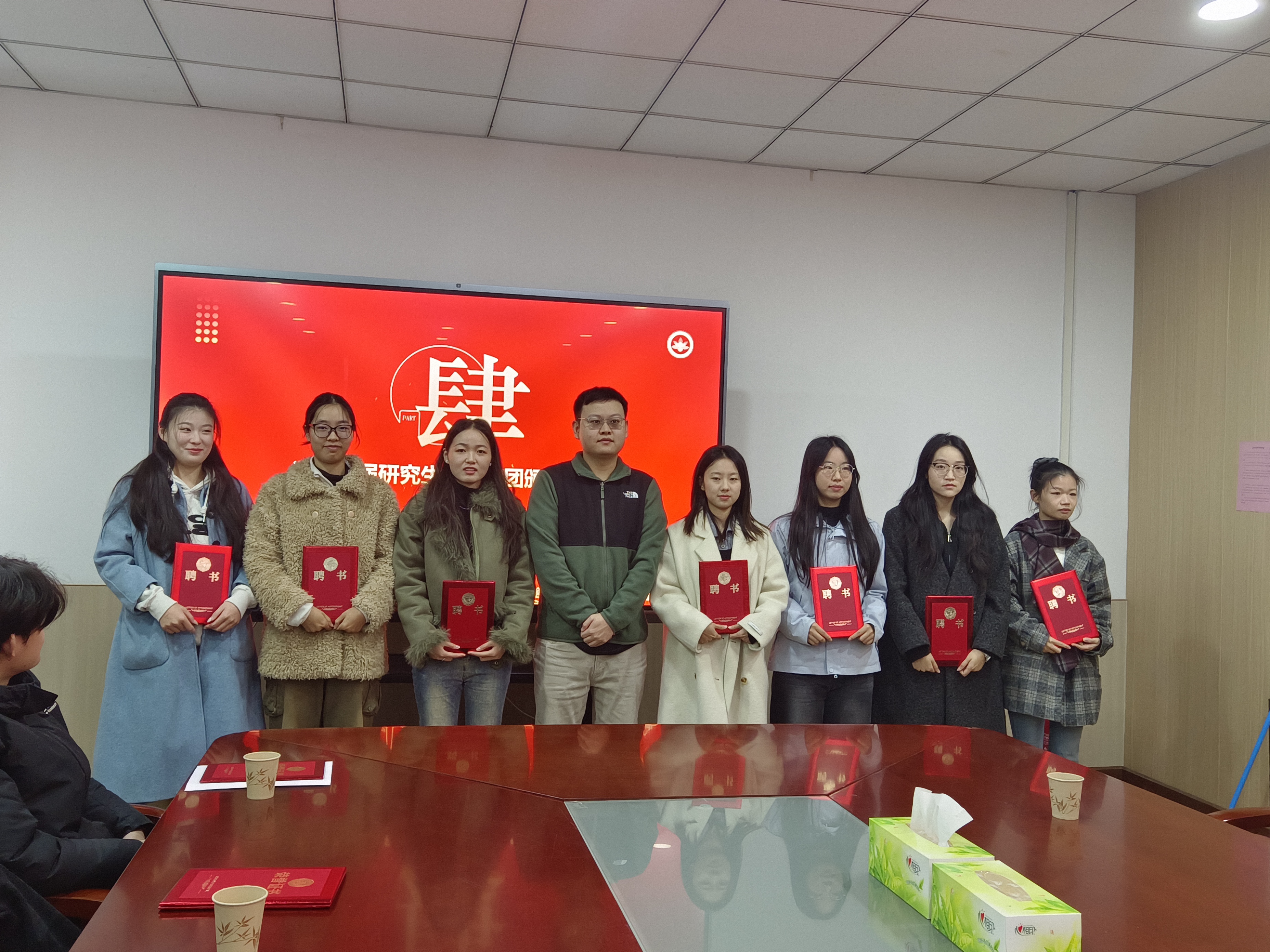 首先,学院第五届研究生学生会主席梁高铭回顾了过去一年研究生会举办的各项活动并对过去的工作进行了全面总结。他指出,在全体成员的共同努力下,研究生会在提升学术氛围、增强学院凝聚力以及促进学生全面发展等方面取得了显著成绩,并结合自身工作经验向新一届研究生会成员分享工作心得。在接下来的环节中,辅导员为第五届研究生学生会主席团成员颁发荣誉证书,随后公布了新一届研究生学生会各部门成员名单,在热烈掌声中老师为新任主席团成员颁发聘书。紧接着,新任学生会主席杨静怡在发言中表示,她深知研究生会的重要性并强调新一届的研究生会将继续发挥师生间的桥梁纽带作用,成为学院良好作风的开拓者、继承者和实践者,推动学院工作的顺利开展。相信在大家的共同努力下,研究生会将为学院带来新的活力和机遇。