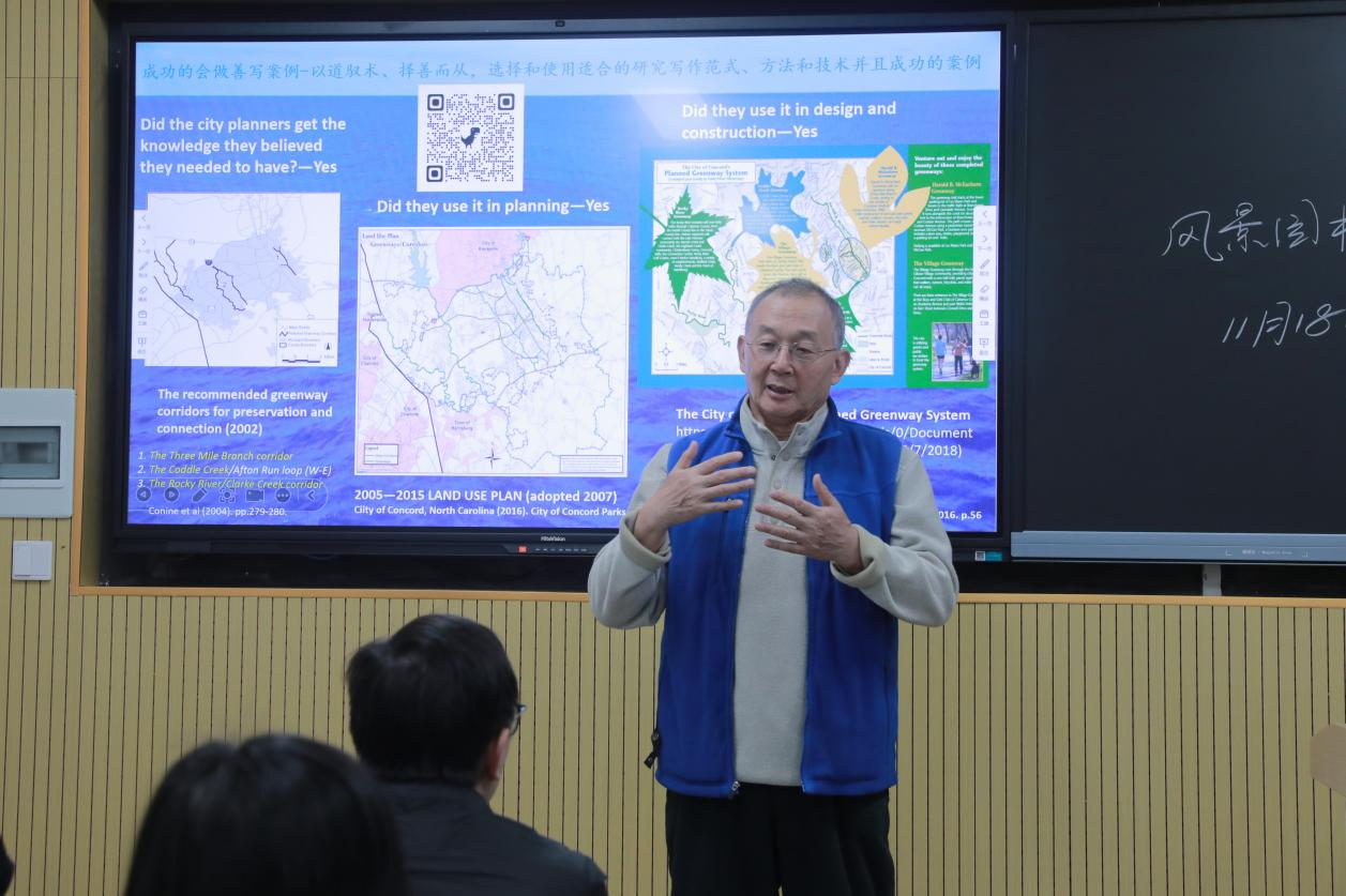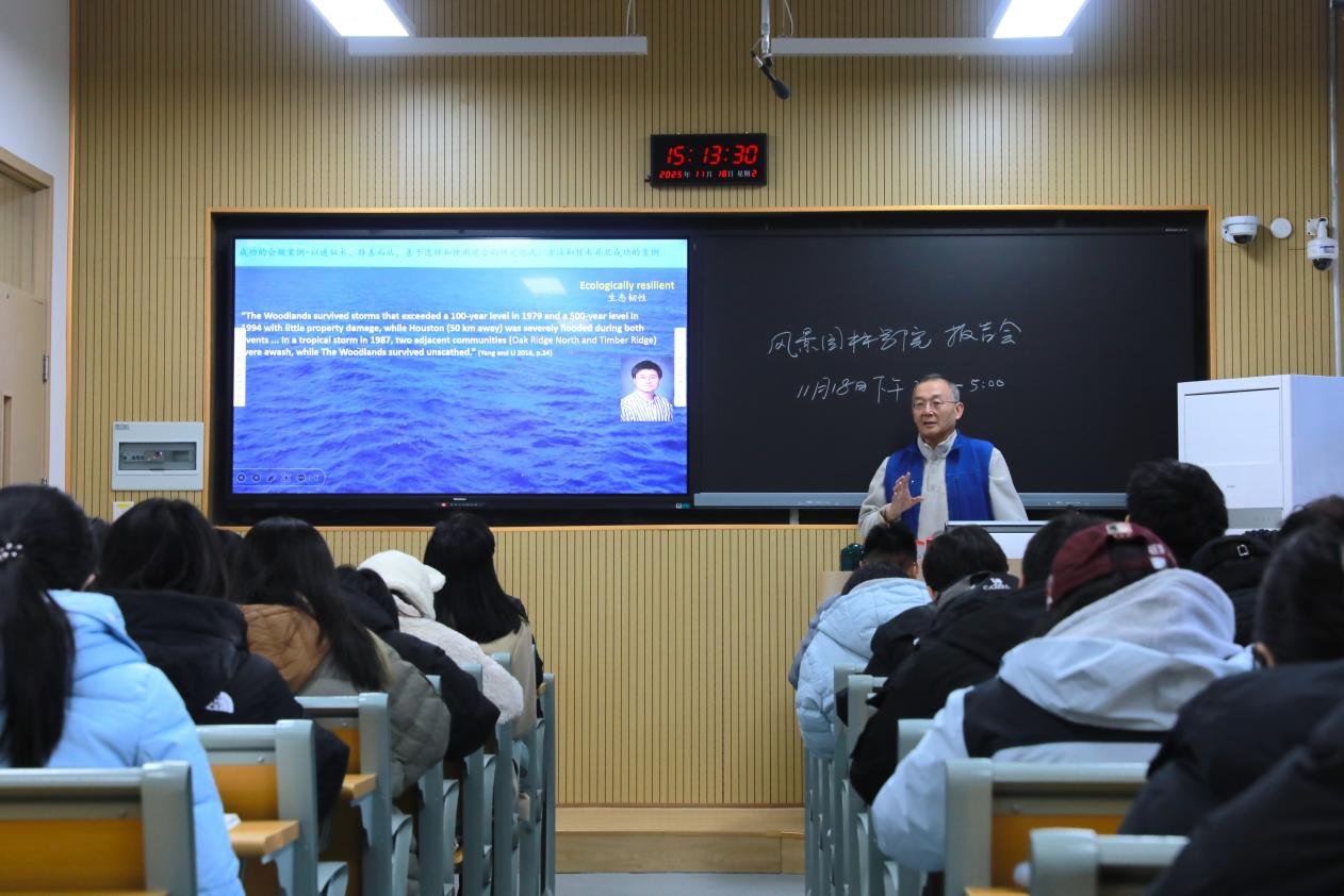 11月18日,国际知名景观与规划专家、美国北卡莱罗纳大学象伟宁教授到我院作专题学术报告。我院风景园林和城乡规划专业师生参加报告会。报告由院党委副书记赵九阳主持。