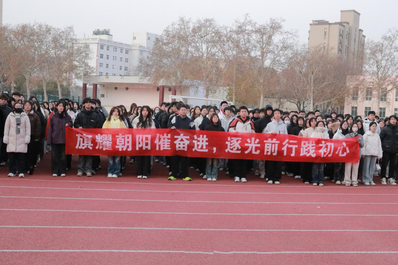 为深入推进爱国主义教育与红色精神传承,引导师生厚植家国情怀、践行时代使命,12月1日上午,我院于文化路校区操场举行“旗耀朝阳催奋进,逐光前行践初心”升国旗仪式。院党委书记胡明忠、院党委副书记赵九阳、副院长阴予兴、副院长雷雅凯、院党政办主任刘其梅、院团委书记徐珂及团委老师、大一班主任出席,2024、2025级全体学生与2023级入党积极分子参加。仪式由赵九阳主持。